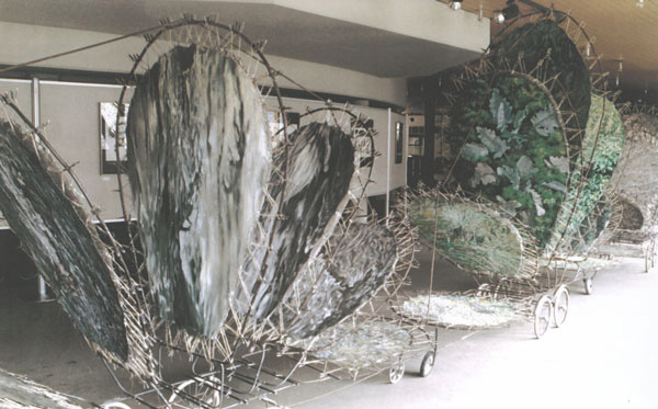 Die Erde auf einen Wagen packen36 bemalte Leinwände zwischen Armierungseisen gespannt.